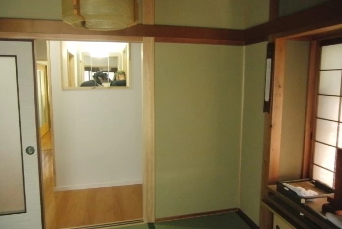 和室のリフォーム、そして、システムキッチン、システムバスの新設、蔵の修繕を致しましたY様邸。 白いキッチンは、お掃除しやすく、傷のつきにくいホーロータイプ。 浴室には、暖房換気扇を設置しました。